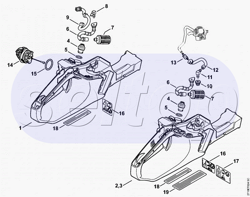 Корпус топливного бака STIHL MS 291, взрыв-схема: