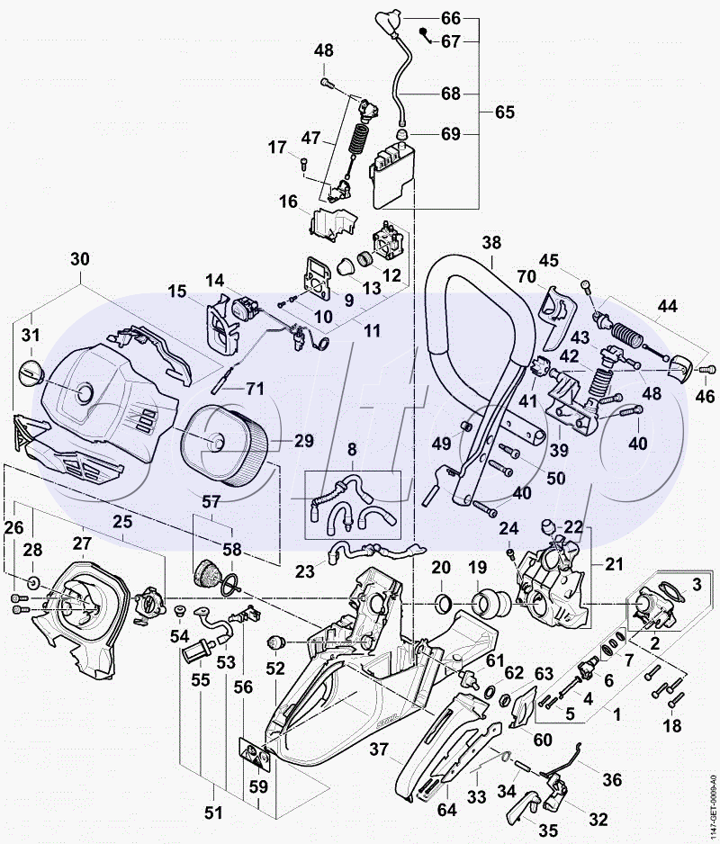 Устройство обогрева рукоятки, Система впрыска, Корпус топливного бака, Трубчатая рукоятка MS 500i-W STIHL MS 500i