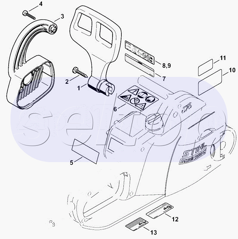 Приспособление для защиты рук MSE 140 C, MSE 160 C, MSE 180 C, MSE 200 C STIHL MSE 180 C, взрыв-схема: