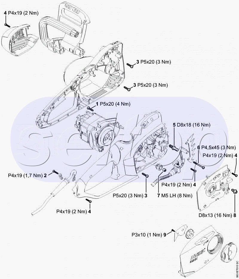 Момент затяжки STIHL MSE 190C, взрыв-схема:
