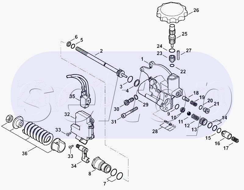 Регулировочный предохранительный блок, распределительный поршень STIHL RE 362 PLUS, взрыв-схема: