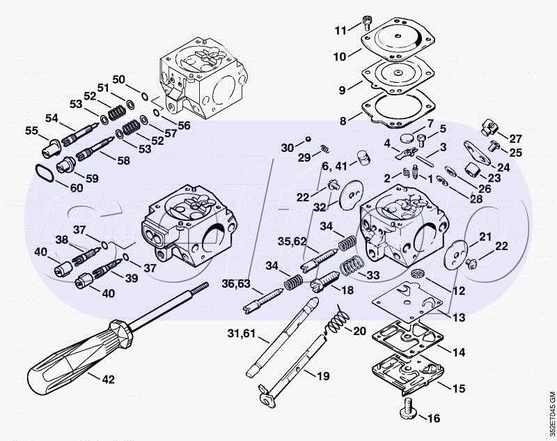 Карбюратор HD-4, HD-13 STIHL BR 320 L, взрыв-схема: