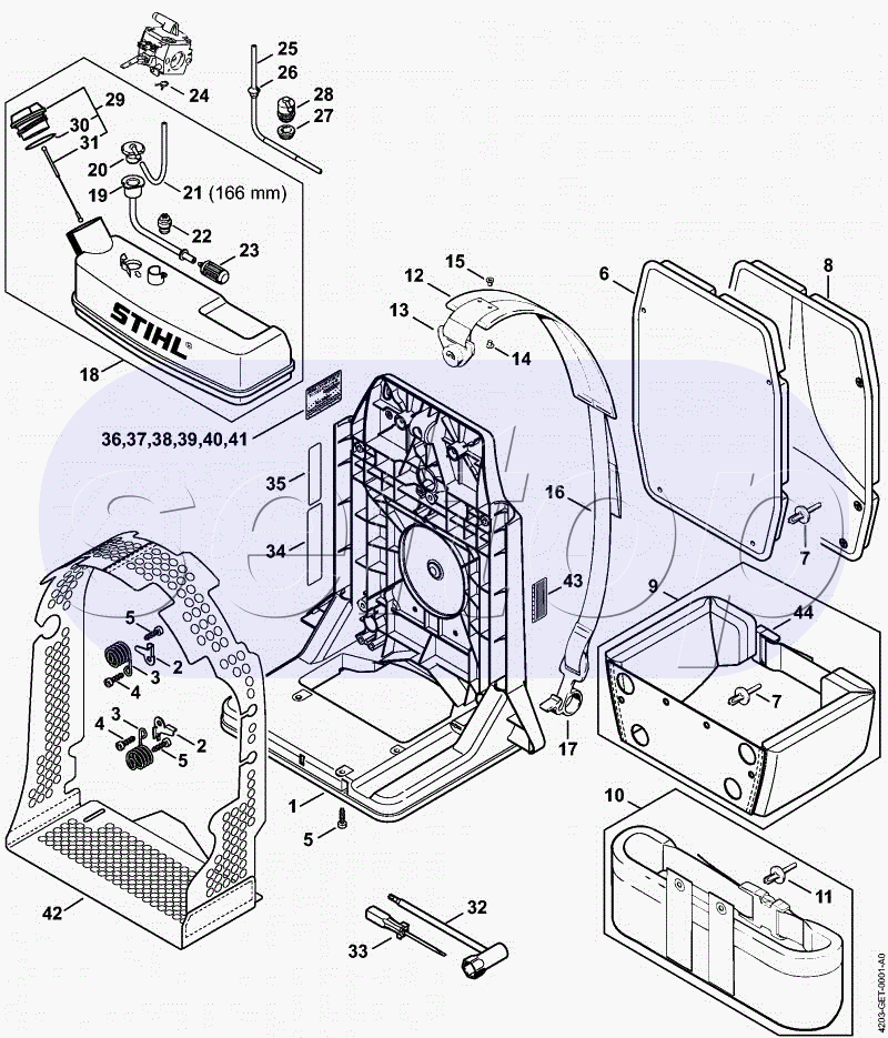 Опорная плита для ношения устройства на спине STIHL BR 340 L, взрыв-схема: