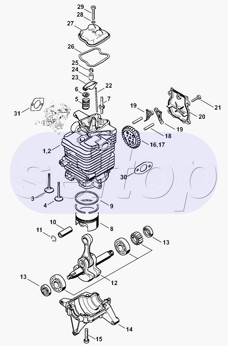 Приводной механизм STIHL BR 600, взрыв-схема: