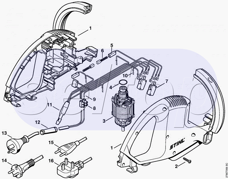 Картер двигателя. Электродвигатель STIHL HSE 51, взрыв-схема: