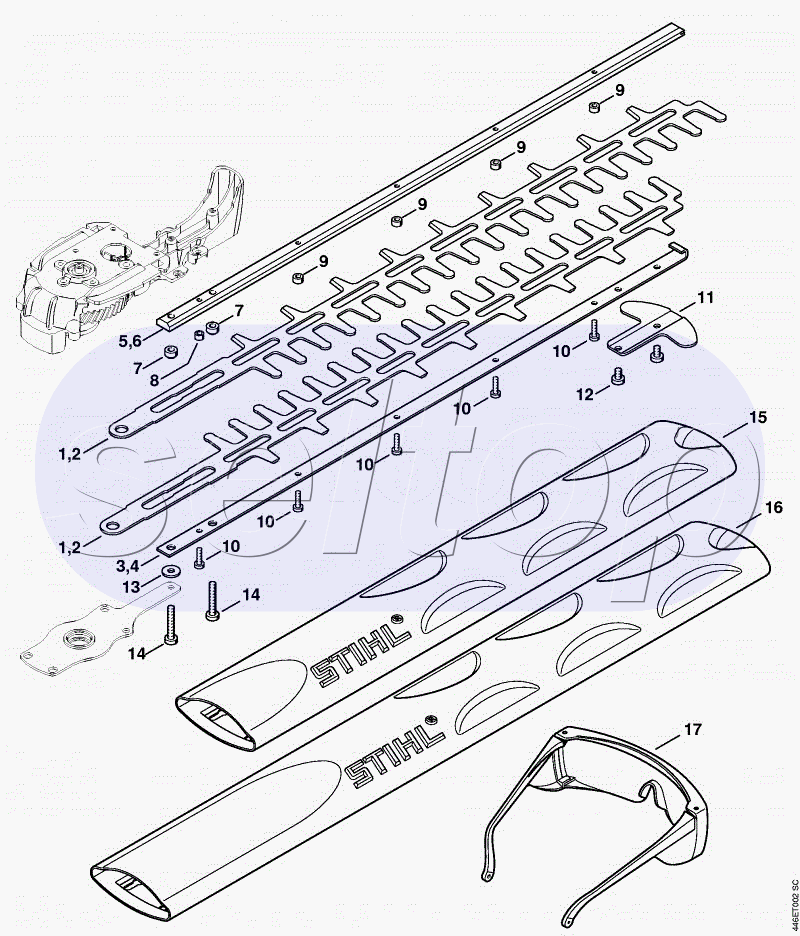 Режущее устройство STIHL HSE 70, взрыв-схема: