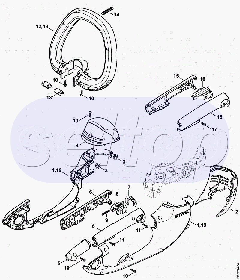 Картер двигателя STIHL HSE 71, взрыв-схема: