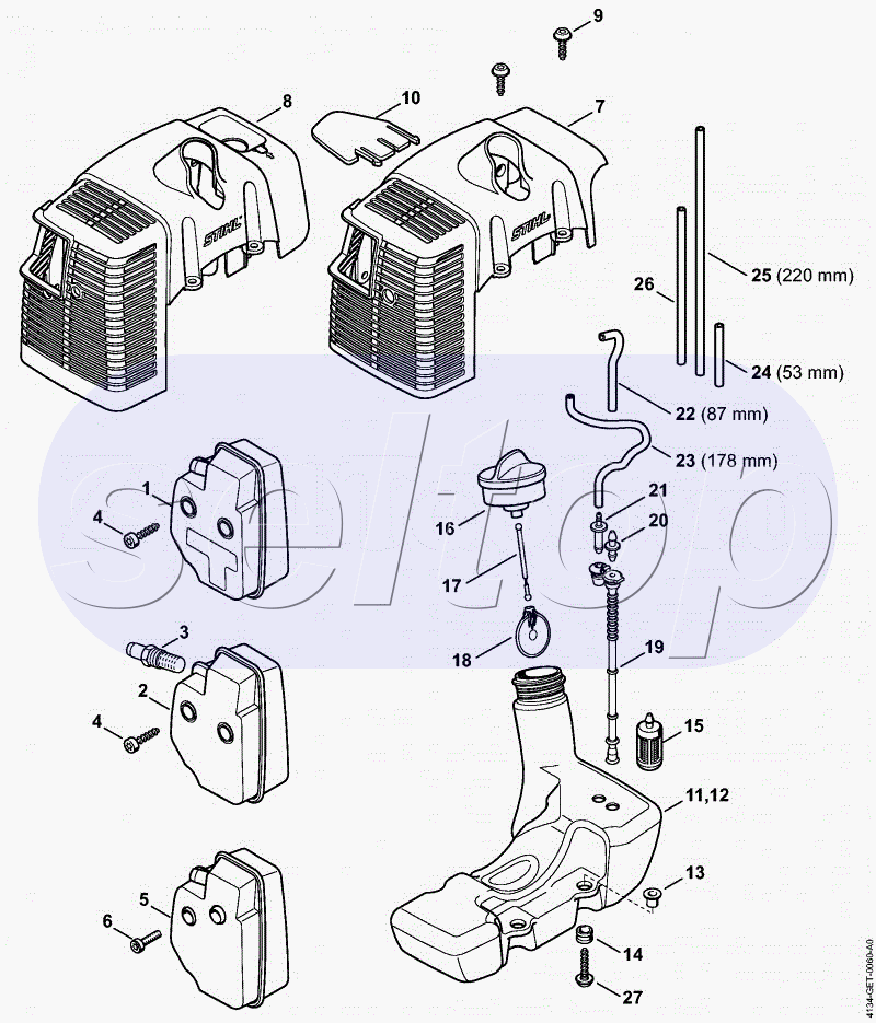 Глушитель. Кожух. (схема 1) STIHL FS 250 R, взрыв-схема: