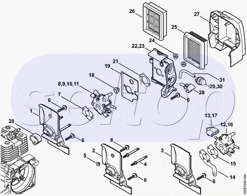 Корпус карбюратора. Воздушный фильтр STIHL FS 380, взрыв-схема: