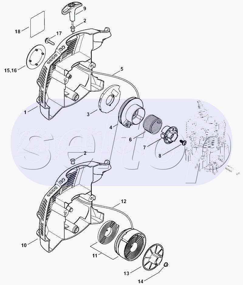 Пусковое устройство ErgoStart STIHL FS 40 C-E, взрыв-схема:
