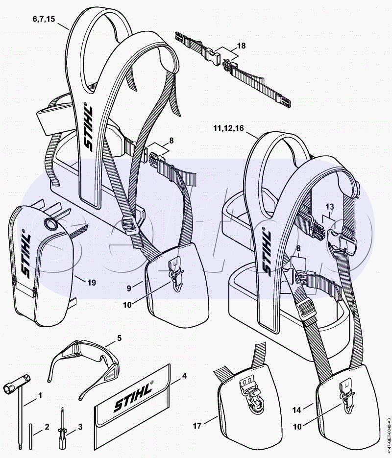 Инструмент. Двухплечевой ремень STIHL FS 410 C, взрыв-схема: