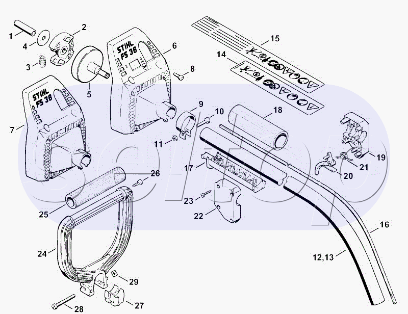 Mуфта сцепления, хвостовик STIHL FS 44, взрыв-схема: