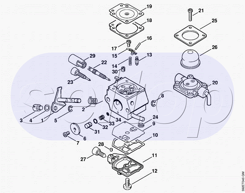 Карбюратор C1Q-S66 (36.2002) STIHL FS 55 T, взрыв-схема: