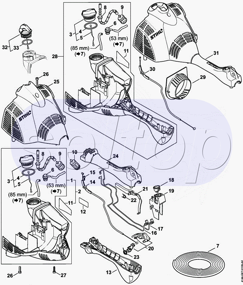 Картер двигателя (круговая рукоятка) STIHL FS 56 RC-E, взрыв-схема: