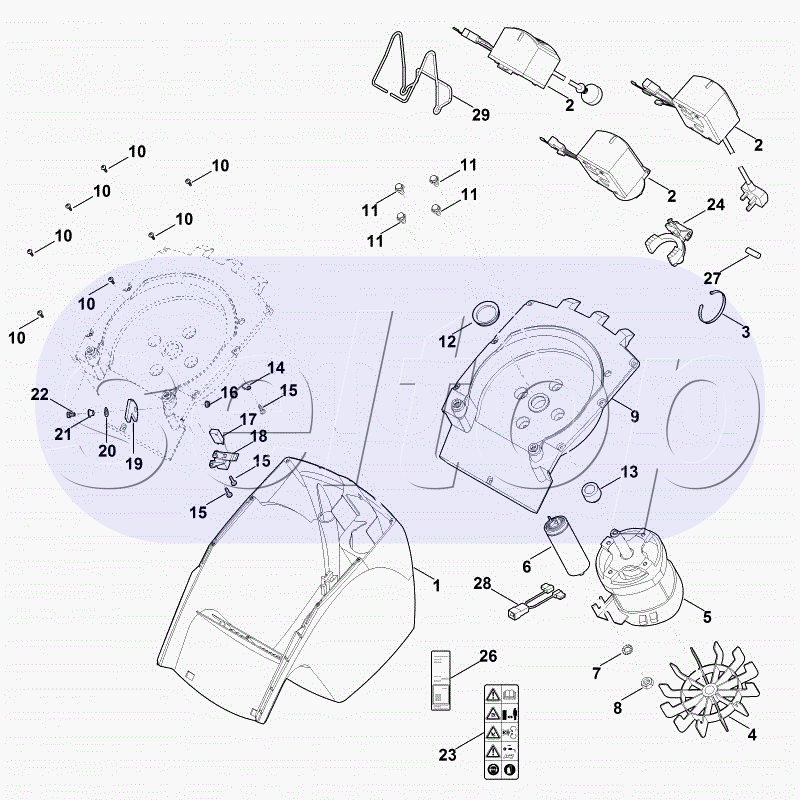 Корпус. Электродвигатель STIHL GHE 150, взрыв-схема: