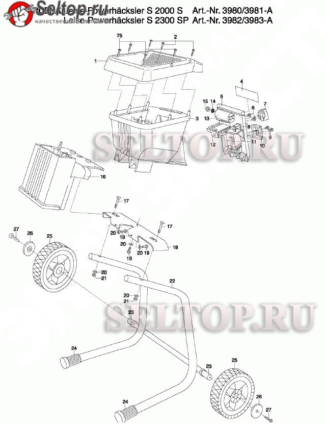 Запчасти для измельчителя садового Gardena s 2000 s (до 2004 года) (артикул 3980), взрыв-схема: