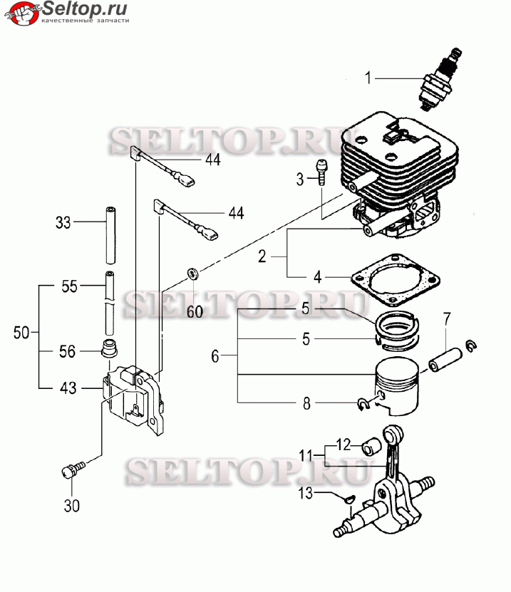 Цилиндр, поршень, коленвал для мотобура Hikoki DA 200E