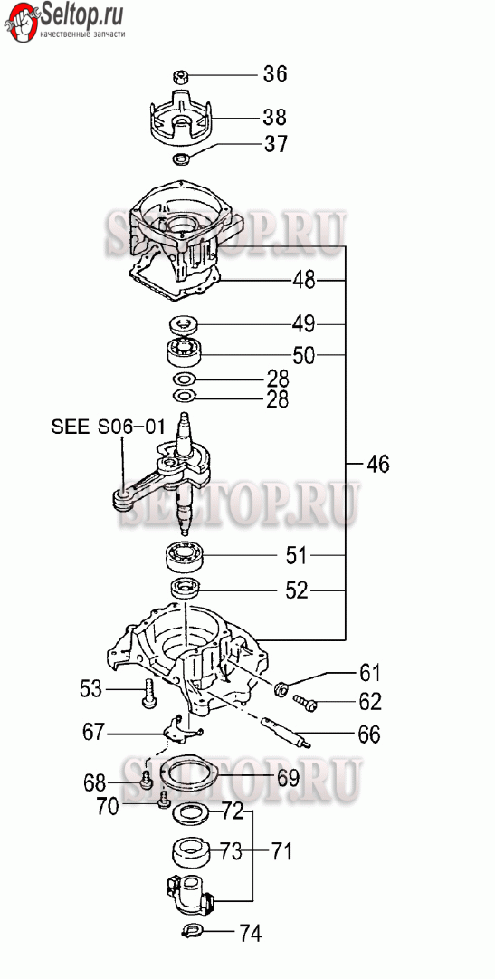 Картер для мотобура Hikoki DA 300E, взрыв-схема: