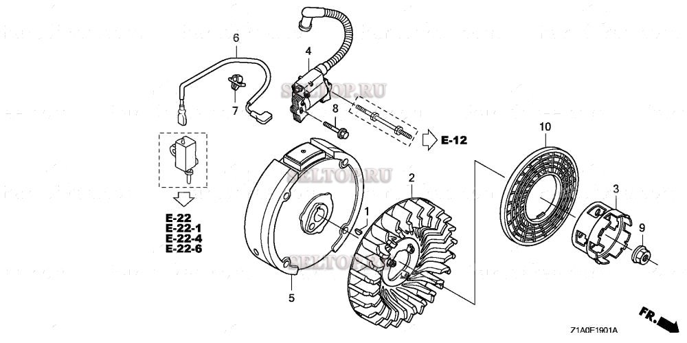 Маховик (2) для Honda GC190A VXA, взрыв-схема: