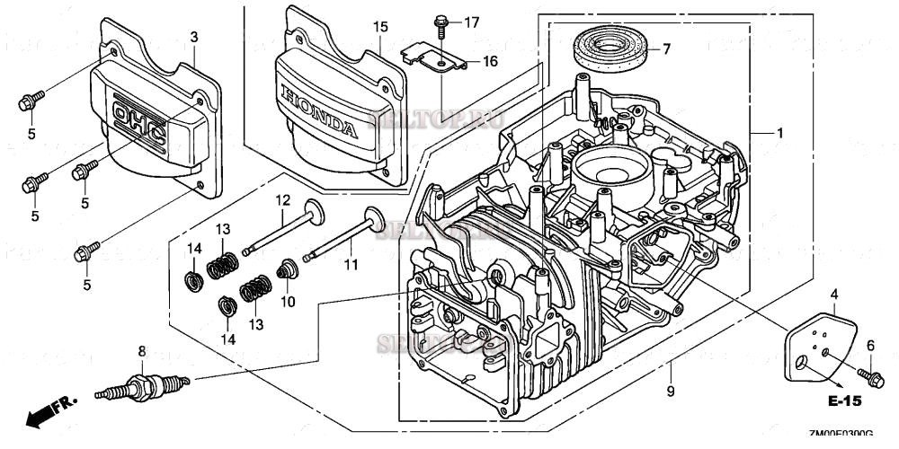 Блок цилиндров для Honda GCV160A A2A, взрыв-схема: