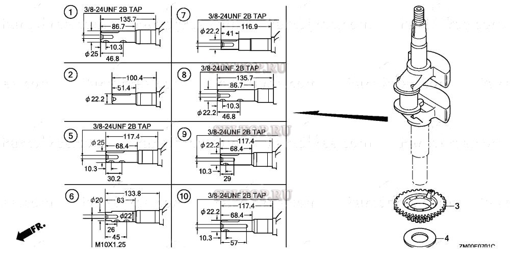 Коленвал (2) для Honda GCV160LA0 N5B, взрыв-схема: