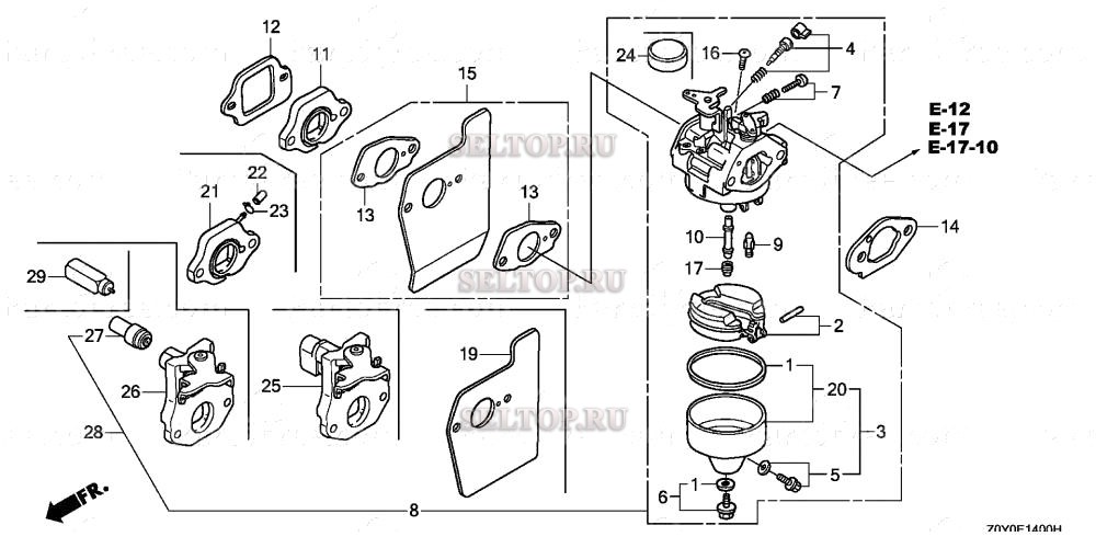 Карбюратор для Honda GCV190A N5AF, взрыв-схема: