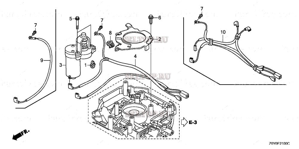 Стартер для Honda GCV190A R3A, взрыв-схема: