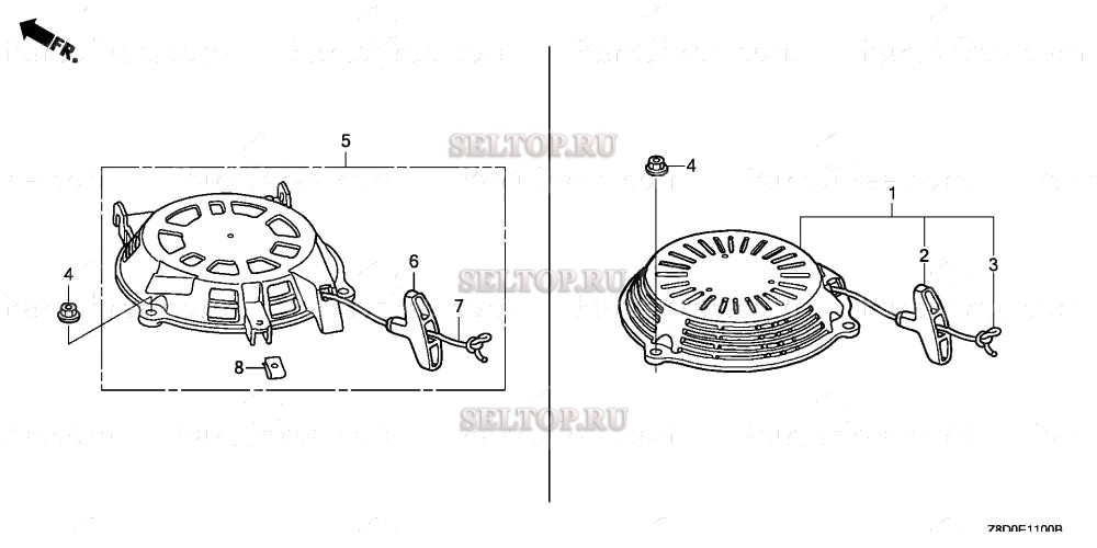 Ручной стартер для Honda GCV190LA BHH, взрыв-схема: