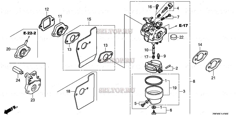 Карбюратор для Honda GCV190LA N5AV, взрыв-схема: