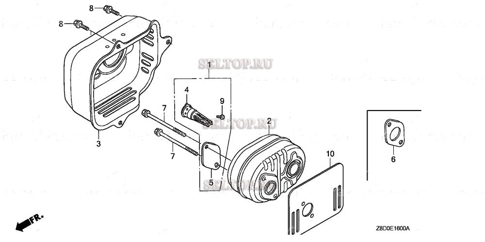 Глушитель для Honda GCV190LA S3A, взрыв-схема:
