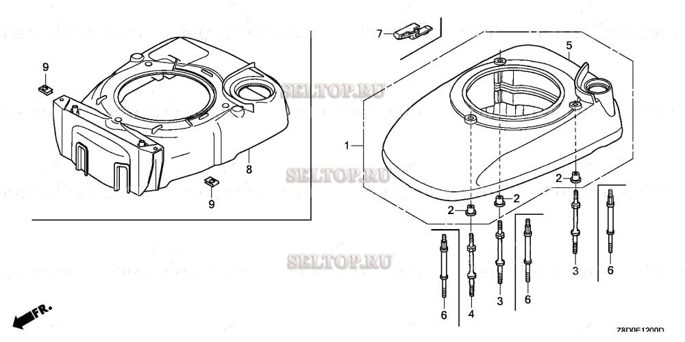Кожух вентилятора для Honda GCV190LA SBL, взрыв-схема: