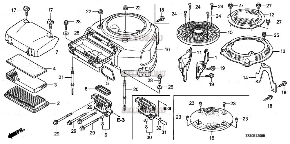 Кожух вентилятора для Honda GCV520U WEE1, взрыв-схема: