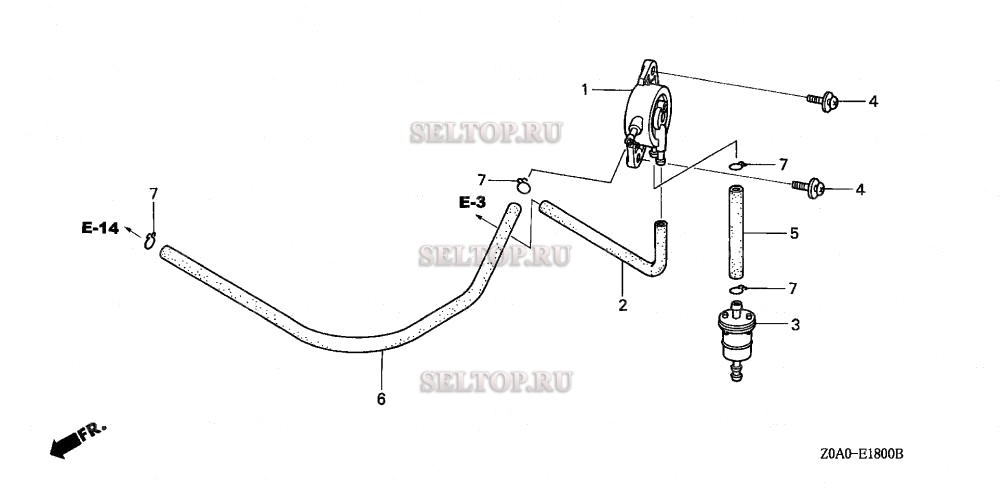 Топливный насос для Honda GCV530 EXA1, взрыв-схема:
