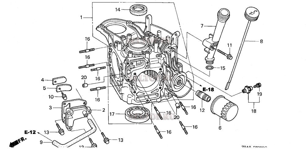 Картер для Honda GCV530 QXA4, взрыв-схема: