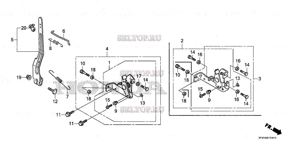 Управление (2) для Honda GX100RT KRB5, взрыв-схема: