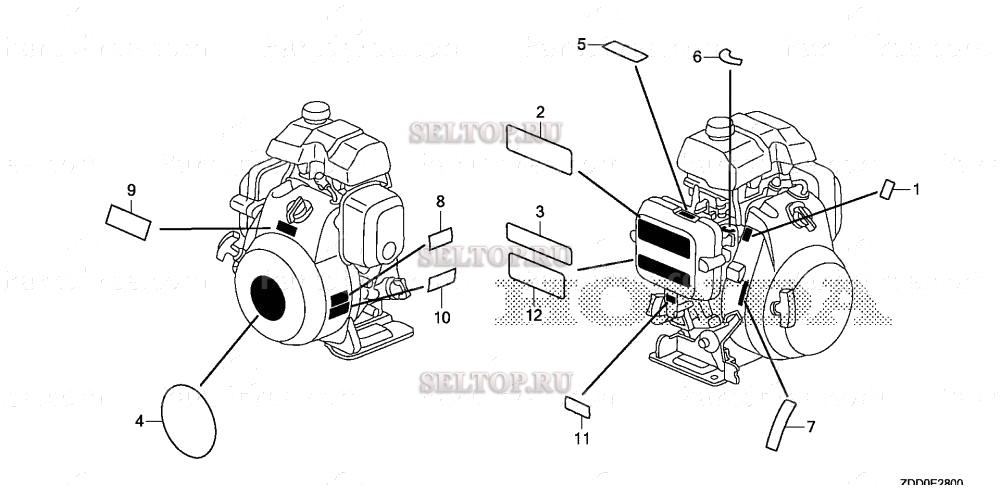Этикетка для Honda GX100RT KRGF, взрыв-схема: