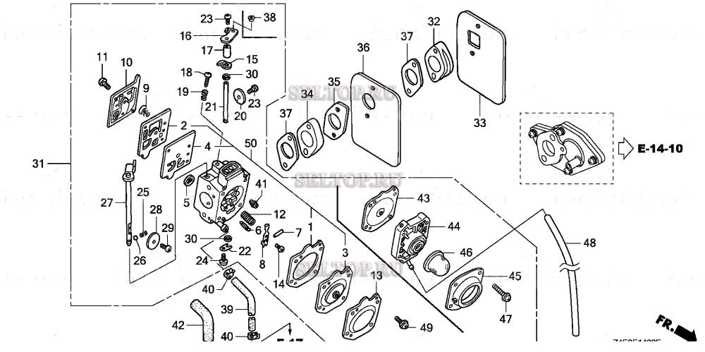 Карбюратор (безпоплавковый) для Honda GX100U KRGF, взрыв-схема: