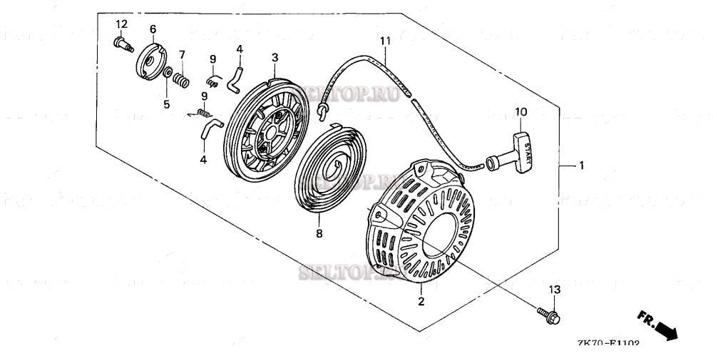 Ручной стартер (3) для Honda GX120K1 HX/A