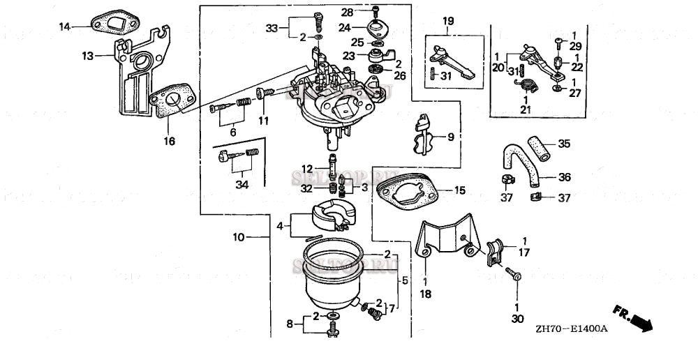 Карбюратор (1) для Honda GX120K1 KRS4, взрыв-схема: