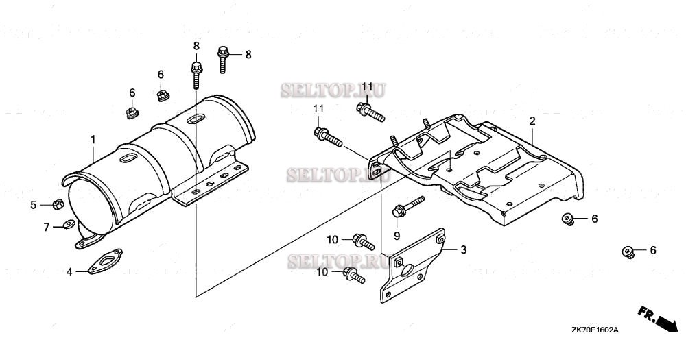 Глушитель (3) для Honda GX120K1 KRS5, взрыв-схема: