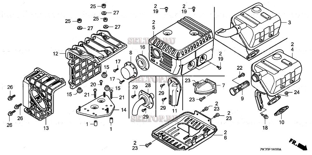 Глушитель (1) для Honda GX120K1 QJG2/A, взрыв-схема: