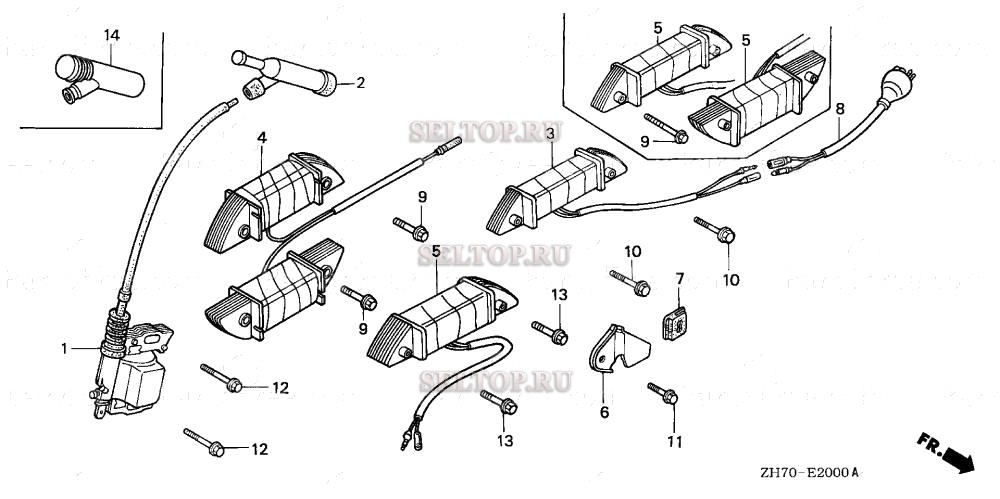 Катушка зажигания для Honda GX120K1 QXS, взрыв-схема: