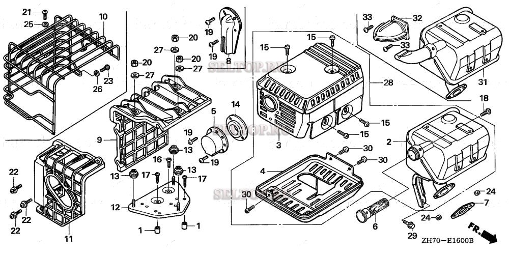 Глушитель (1) для Honda GX120K1 S1, взрыв-схема: