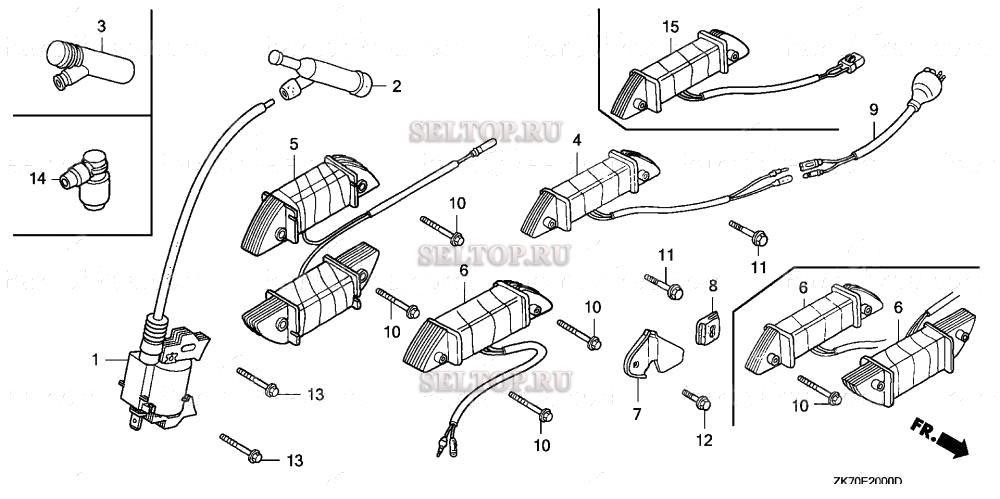 Катушка зажигания для Honda GX120K1 SWX2/A, взрыв-схема: