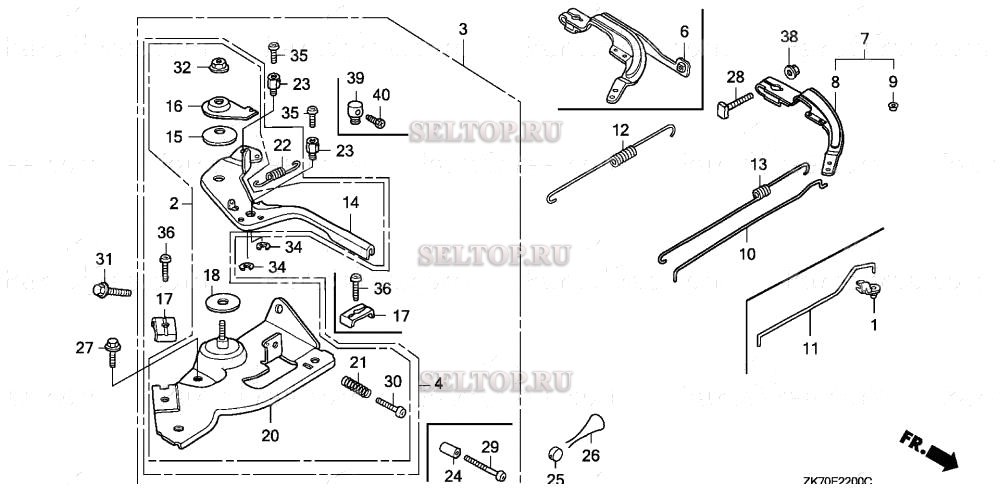 Управление (1) для Honda GX120K1 SX/A, взрыв-схема: