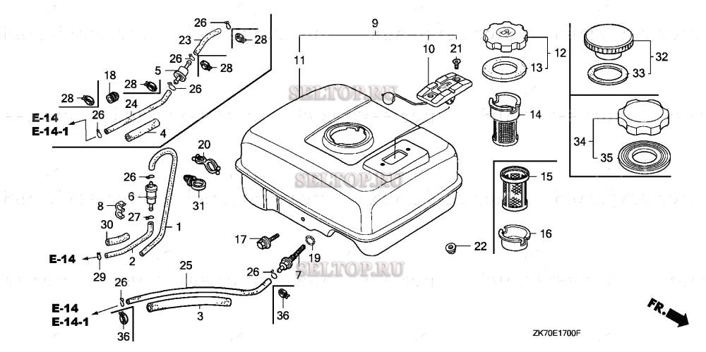 Топливный бак (1) для Honda GX120K1 WKT2/A, взрыв-схема: