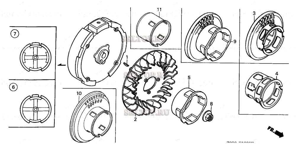 Маховик для Honda GX120T1 QA2, взрыв-схема: