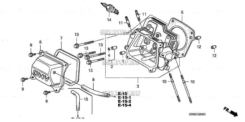 Головка цилиндра для Honda GX120T1 QX2, взрыв-схема: