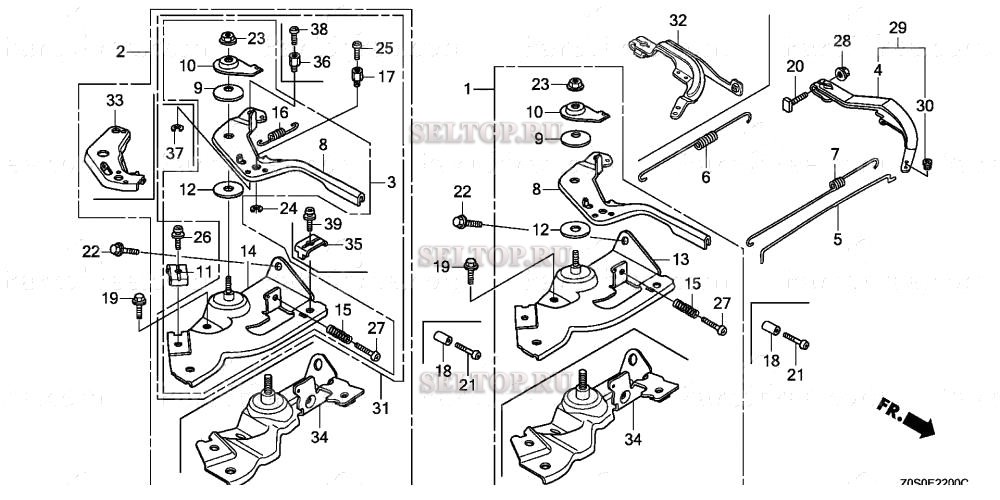 Управление (1) для Honda GX120T1 TX2, взрыв-схема: