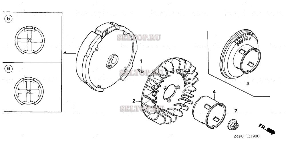 Маховик для Honda GX120U1 QX7, взрыв-схема:
